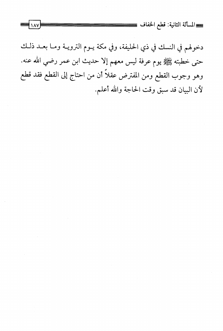 نام کتاب : مشكل لباس الإحرام دراسة ست مسائل من أحكام لباس الإحرام مع تخريج الأحاديث والتعريف بأسماء الألبسة نویسنده : إبراهيم بن محمد الصبيحي جلد : 1 صفحه : 187