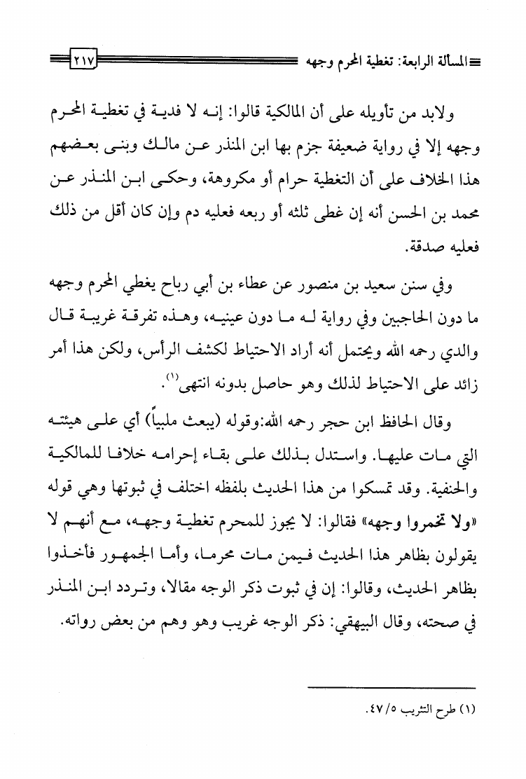 نام کتاب : مشكل لباس الإحرام دراسة ست مسائل من أحكام لباس الإحرام مع تخريج الأحاديث والتعريف بأسماء الألبسة نویسنده : إبراهيم بن محمد الصبيحي جلد : 1 صفحه : 217