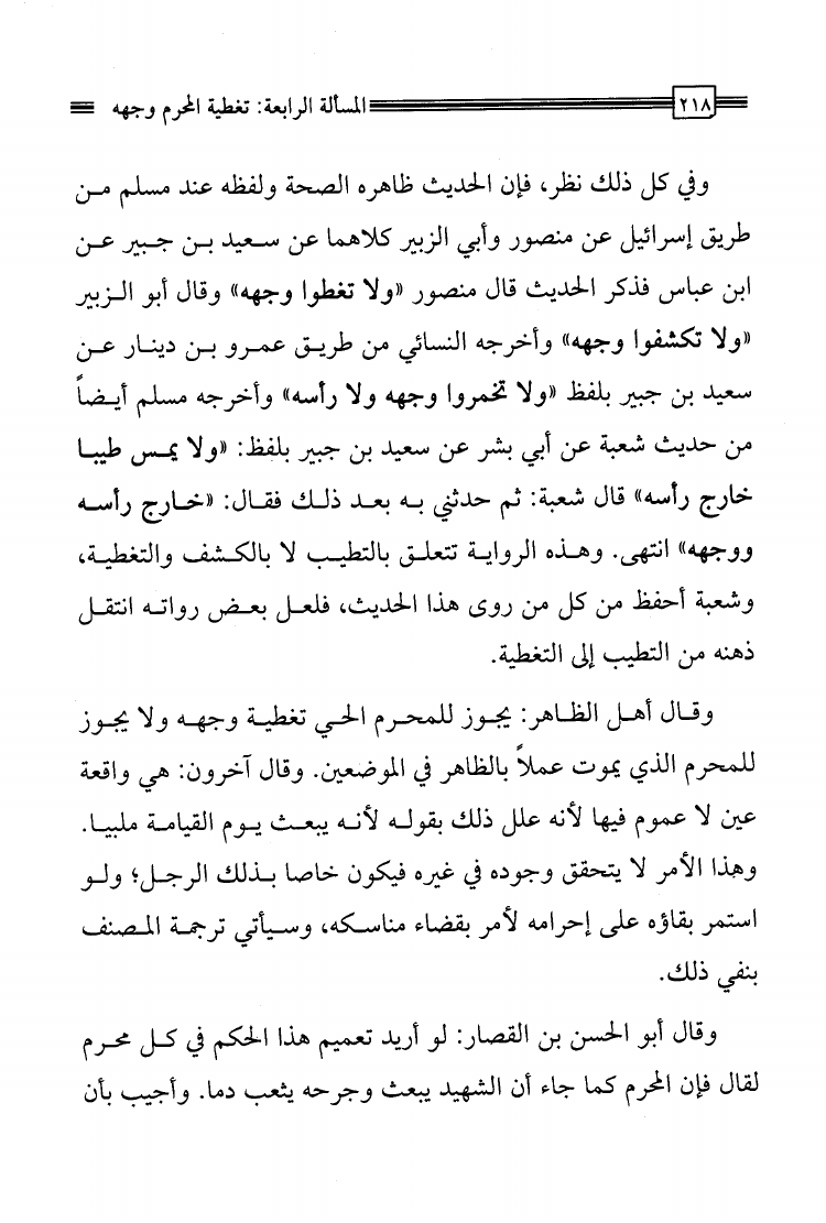 نام کتاب : مشكل لباس الإحرام دراسة ست مسائل من أحكام لباس الإحرام مع تخريج الأحاديث والتعريف بأسماء الألبسة نویسنده : إبراهيم بن محمد الصبيحي جلد : 1 صفحه : 218