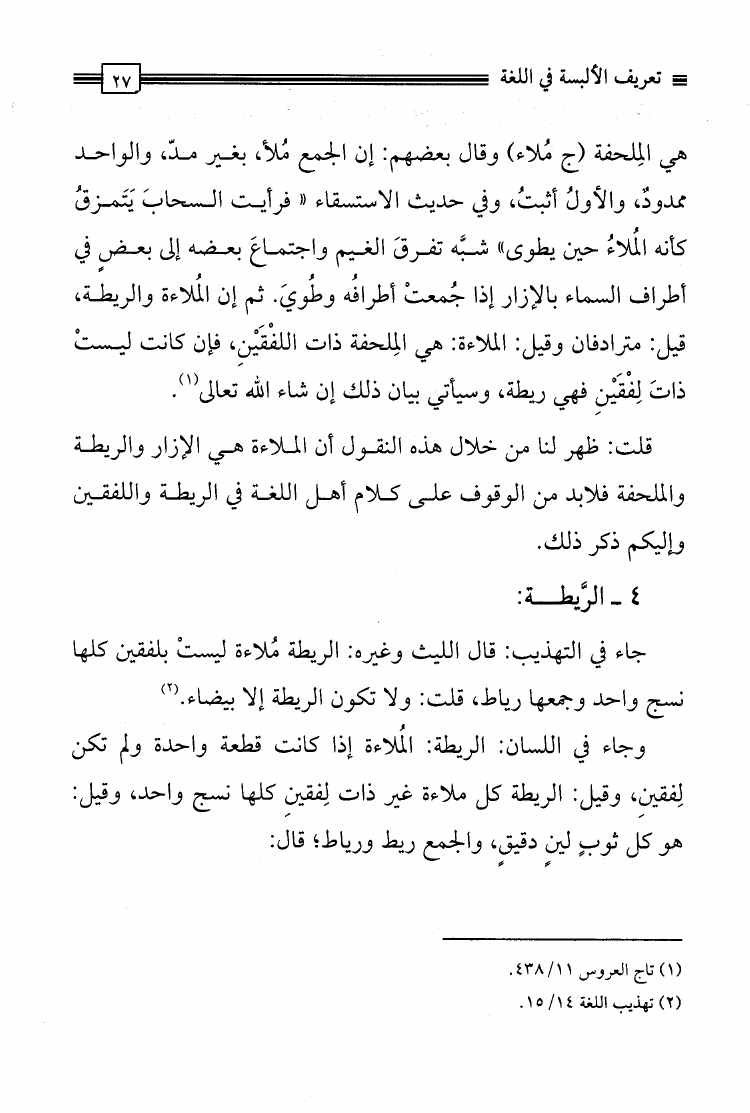 نام کتاب : مشكل لباس الإحرام دراسة ست مسائل من أحكام لباس الإحرام مع تخريج الأحاديث والتعريف بأسماء الألبسة نویسنده : إبراهيم بن محمد الصبيحي جلد : 1 صفحه : 27
