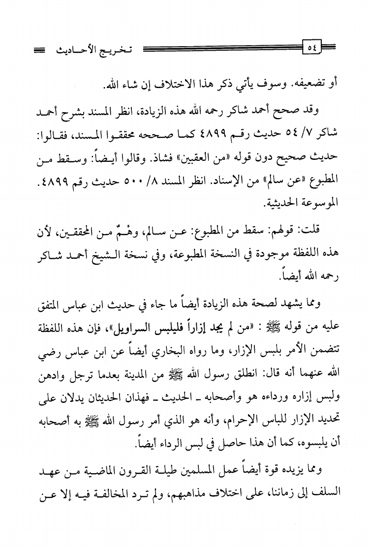 نام کتاب : مشكل لباس الإحرام دراسة ست مسائل من أحكام لباس الإحرام مع تخريج الأحاديث والتعريف بأسماء الألبسة نویسنده : إبراهيم بن محمد الصبيحي جلد : 1 صفحه : 54