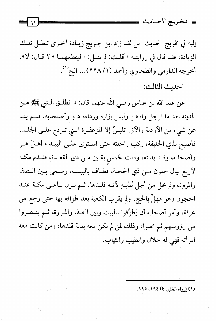 نام کتاب : مشكل لباس الإحرام دراسة ست مسائل من أحكام لباس الإحرام مع تخريج الأحاديث والتعريف بأسماء الألبسة نویسنده : إبراهيم بن محمد الصبيحي جلد : 1 صفحه : 61