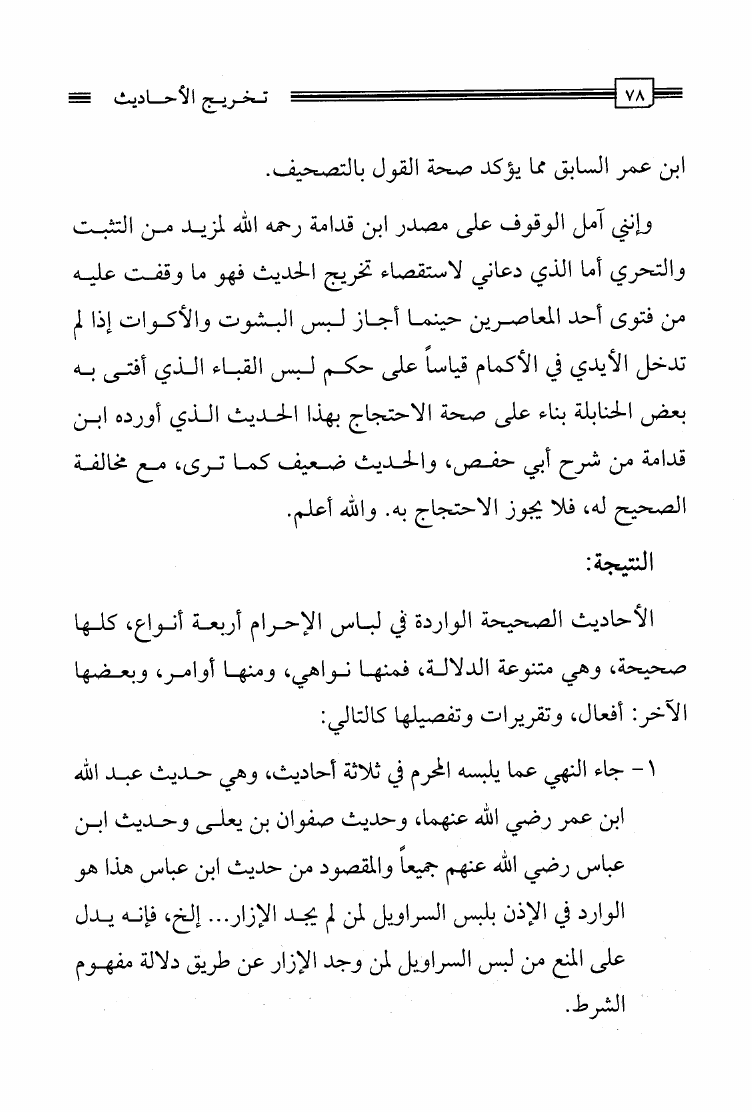نام کتاب : مشكل لباس الإحرام دراسة ست مسائل من أحكام لباس الإحرام مع تخريج الأحاديث والتعريف بأسماء الألبسة نویسنده : إبراهيم بن محمد الصبيحي جلد : 1 صفحه : 78