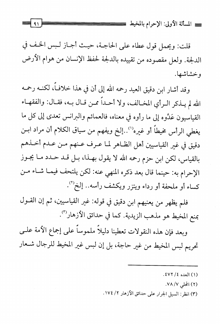 نام کتاب : مشكل لباس الإحرام دراسة ست مسائل من أحكام لباس الإحرام مع تخريج الأحاديث والتعريف بأسماء الألبسة نویسنده : إبراهيم بن محمد الصبيحي جلد : 1 صفحه : 91