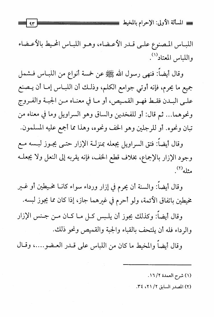 نام کتاب : مشكل لباس الإحرام دراسة ست مسائل من أحكام لباس الإحرام مع تخريج الأحاديث والتعريف بأسماء الألبسة نویسنده : إبراهيم بن محمد الصبيحي جلد : 1 صفحه : 93