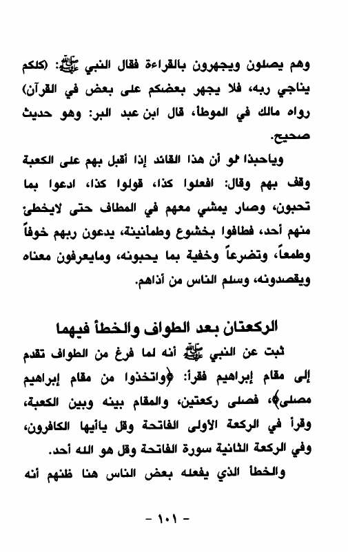 نام کتاب : مناسك الحج والعمرة والمشروع في الزيارة والأخطاء القولية والفعلية من الإحرام حتى الزيارة وأسئلة مهمة نویسنده : محمد بن صالح العثيمين جلد : 1 صفحه : 101
