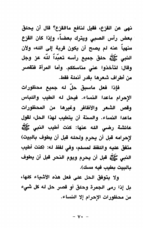 نام کتاب : مناسك الحج والعمرة والمشروع في الزيارة والأخطاء القولية والفعلية من الإحرام حتى الزيارة وأسئلة مهمة نویسنده : محمد بن صالح العثيمين جلد : 1 صفحه : 70