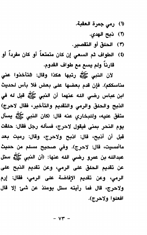 نام کتاب : مناسك الحج والعمرة والمشروع في الزيارة والأخطاء القولية والفعلية من الإحرام حتى الزيارة وأسئلة مهمة نویسنده : محمد بن صالح العثيمين جلد : 1 صفحه : 73