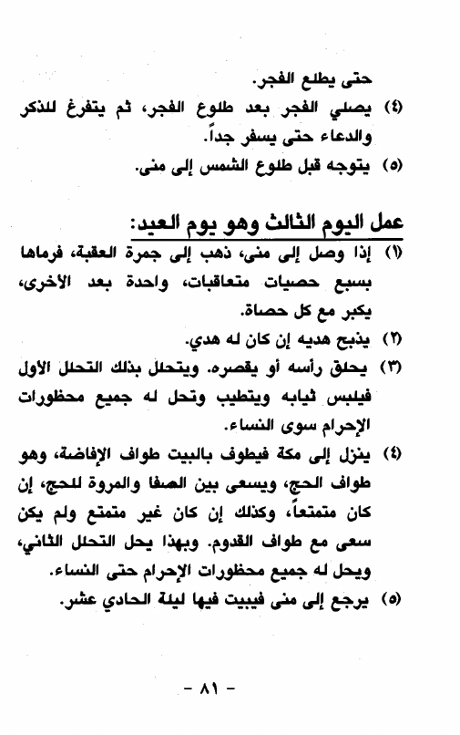 نام کتاب : مناسك الحج والعمرة والمشروع في الزيارة والأخطاء القولية والفعلية من الإحرام حتى الزيارة وأسئلة مهمة نویسنده : محمد بن صالح العثيمين جلد : 1 صفحه : 81