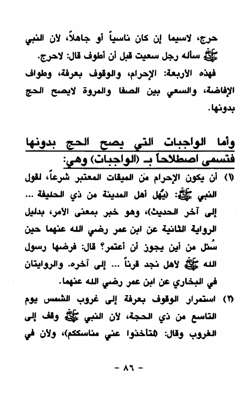 نام کتاب : مناسك الحج والعمرة والمشروع في الزيارة والأخطاء القولية والفعلية من الإحرام حتى الزيارة وأسئلة مهمة نویسنده : محمد بن صالح العثيمين جلد : 1 صفحه : 86