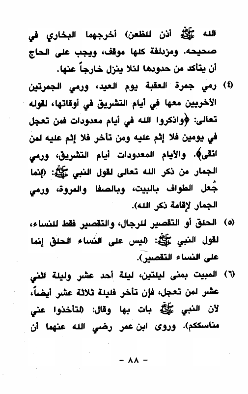 نام کتاب : مناسك الحج والعمرة والمشروع في الزيارة والأخطاء القولية والفعلية من الإحرام حتى الزيارة وأسئلة مهمة نویسنده : محمد بن صالح العثيمين جلد : 1 صفحه : 88
