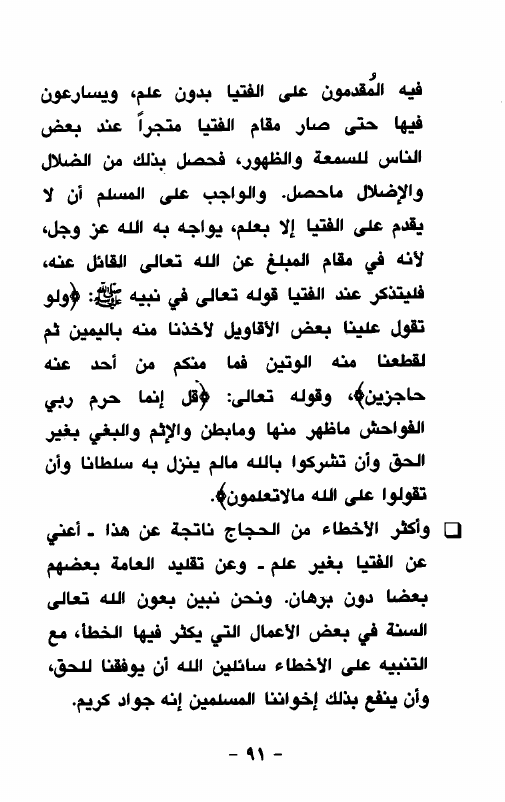 نام کتاب : مناسك الحج والعمرة والمشروع في الزيارة والأخطاء القولية والفعلية من الإحرام حتى الزيارة وأسئلة مهمة نویسنده : محمد بن صالح العثيمين جلد : 1 صفحه : 91