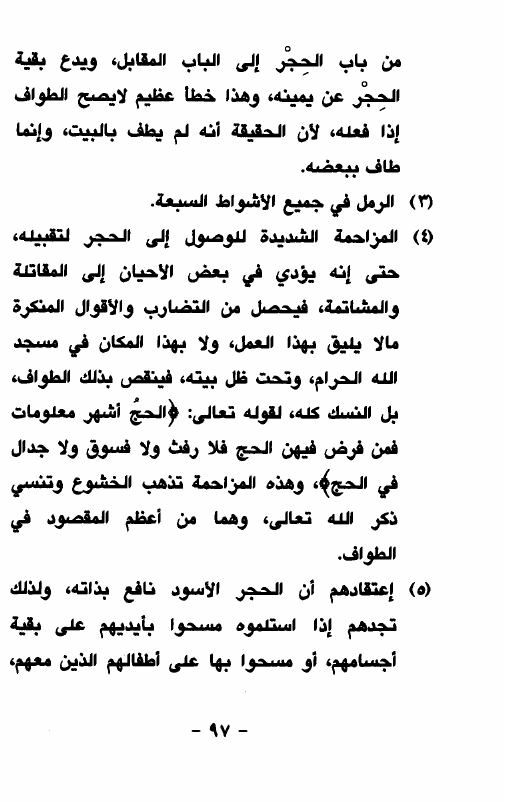نام کتاب : مناسك الحج والعمرة والمشروع في الزيارة والأخطاء القولية والفعلية من الإحرام حتى الزيارة وأسئلة مهمة نویسنده : محمد بن صالح العثيمين جلد : 1 صفحه : 97