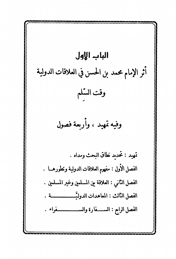 أصول العلاقات الدولية في فقه الإمام محمد بن الحسن الشيباني دراسة فقهية مقارنة