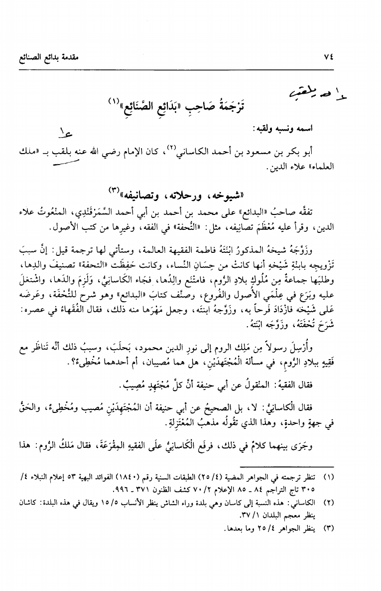 أبو بكر بن مسعود الكاساني الحنفي علاء الدين