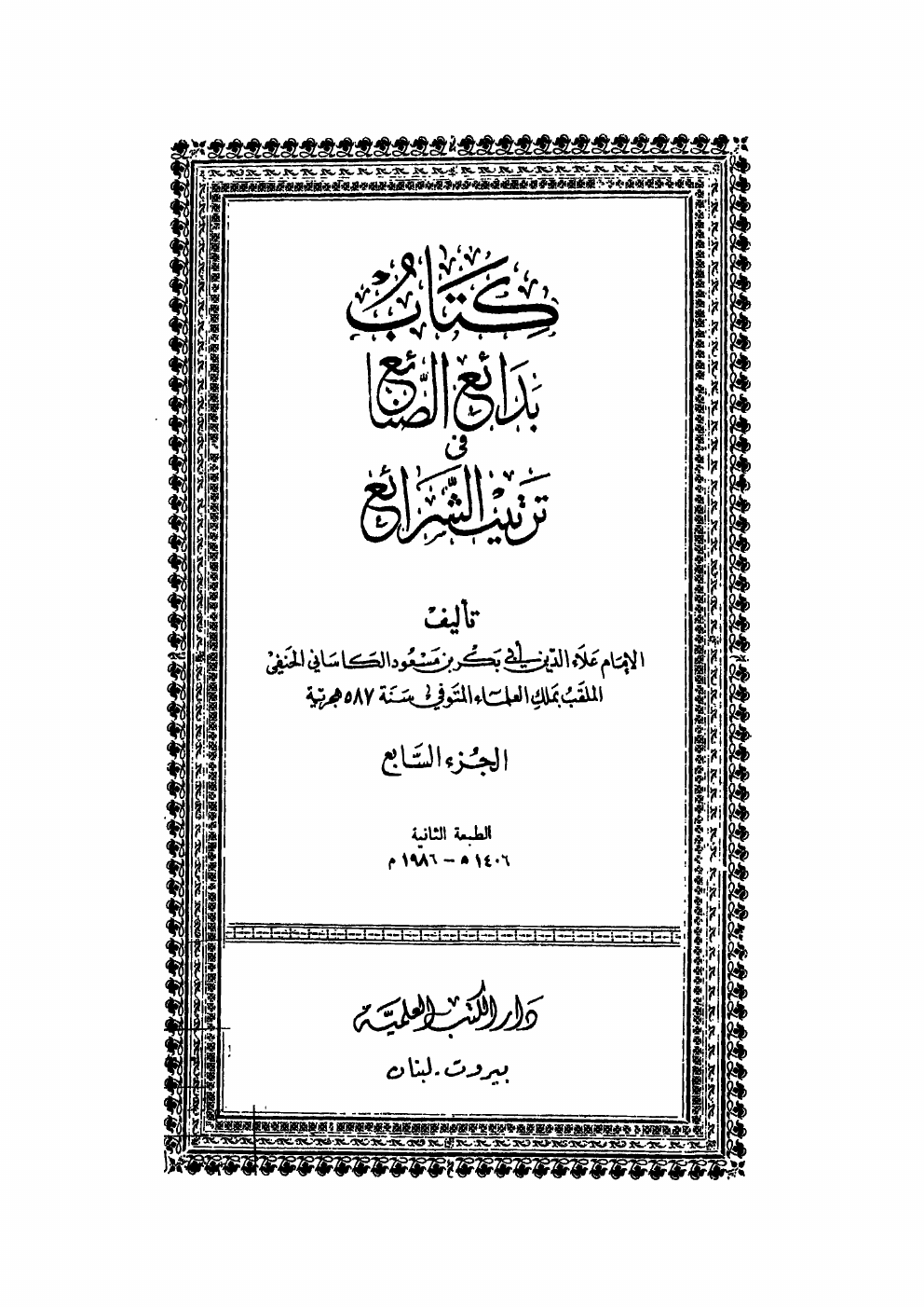 بدائع الصنائع في ترتيب الشرائع (ط. الجمالية)