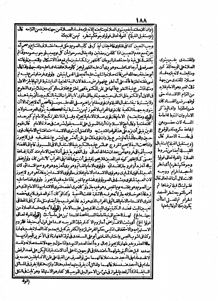 نام کتاب : شرح فتح القدير شرح كتاب الهداية في شرح البداية وبهامشه شرح العناية على الهداية وحاشية سعدي جلبي، ويليه: نتائج الأفكار في كشف الرموز والأسرار (ط. الأوقاف السعودية) نویسنده : ابن الهمام الحنفي - البابرتي - سعدي أفندي - قاضي زاده جلد : 1 صفحه : 188