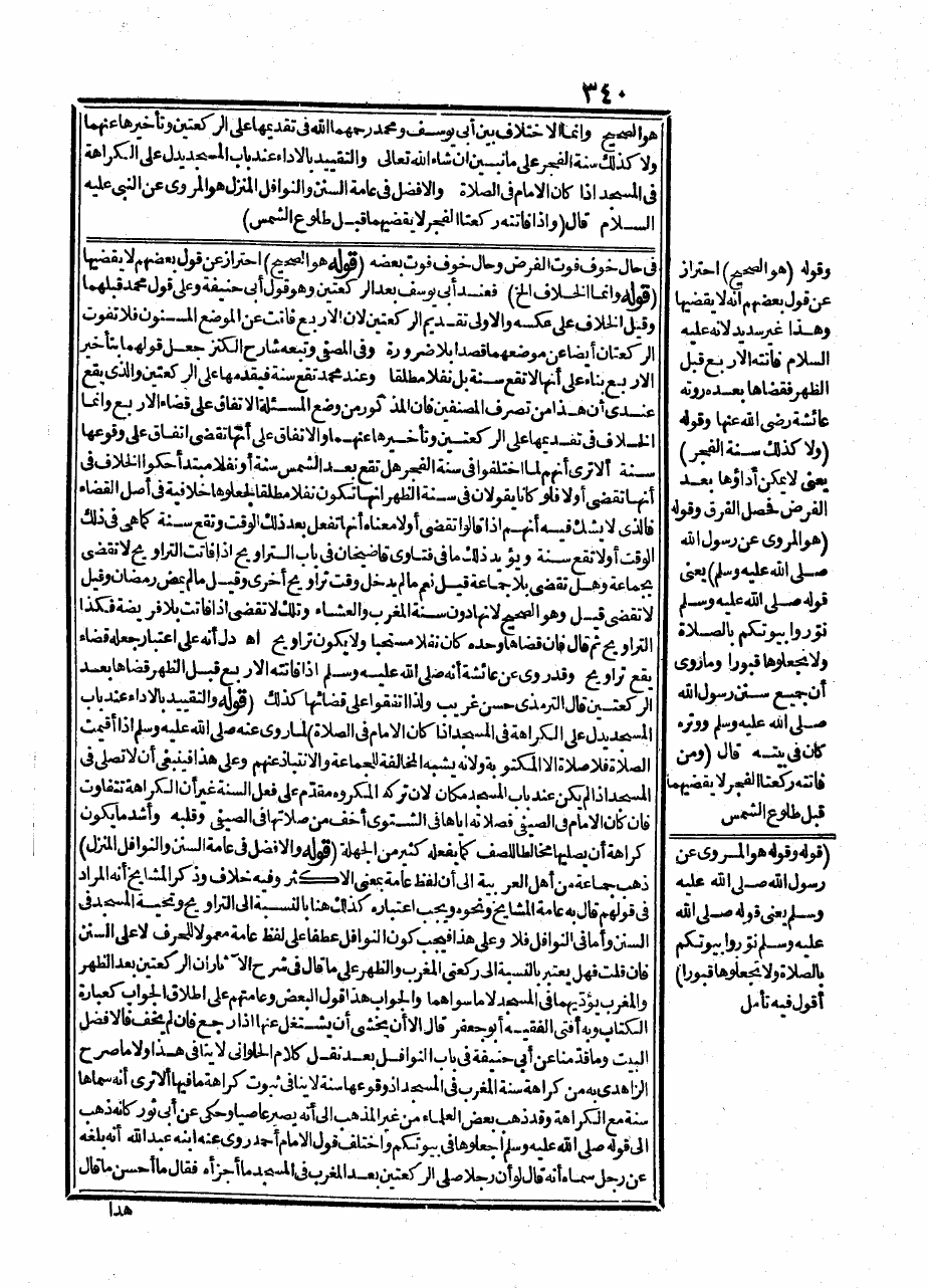 نام کتاب : شرح فتح القدير شرح كتاب الهداية في شرح البداية وبهامشه شرح العناية على الهداية وحاشية سعدي جلبي، ويليه: نتائج الأفكار في كشف الرموز والأسرار (ط. الأوقاف السعودية) نویسنده : ابن الهمام الحنفي - البابرتي - سعدي أفندي - قاضي زاده جلد : 1 صفحه : 340