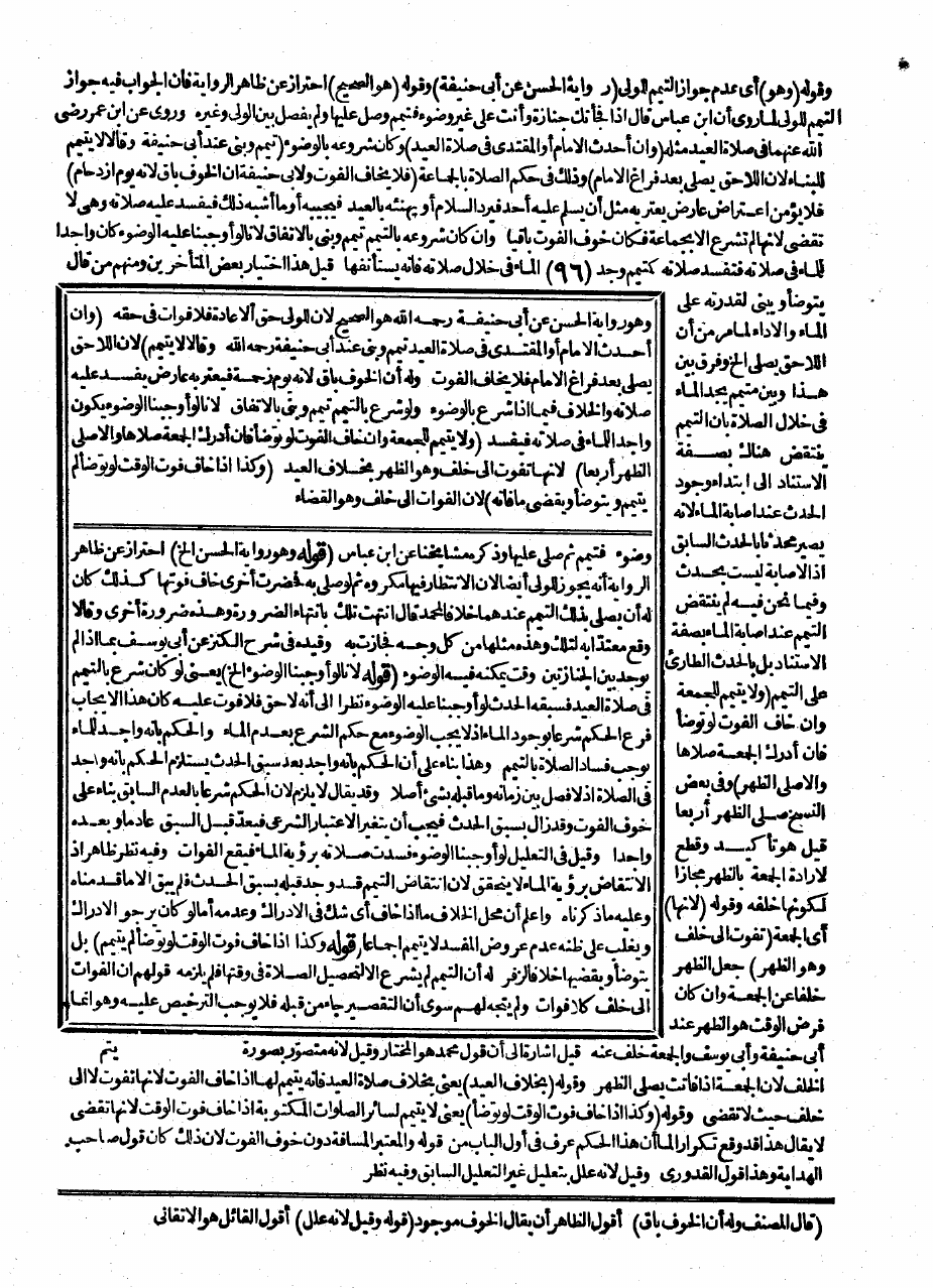 نام کتاب : شرح فتح القدير مع تكملته نتائج الأفكار، وبهامشه شرح العناية على الهداية وحاشية سعدي جلبي على شرح العناية (ط. الأميرية) نویسنده : ابن الهمام الحنفي - قاضي زاده - البابرتي - سعدي جلبي جلد : 1 صفحه : 96