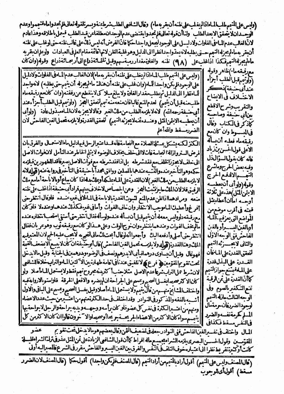 نام کتاب : شرح فتح القدير مع تكملته نتائج الأفكار، وبهامشه شرح العناية على الهداية وحاشية سعدي جلبي على شرح العناية (ط. الأميرية) نویسنده : ابن الهمام الحنفي - قاضي زاده - البابرتي - سعدي جلبي جلد : 1 صفحه : 98
