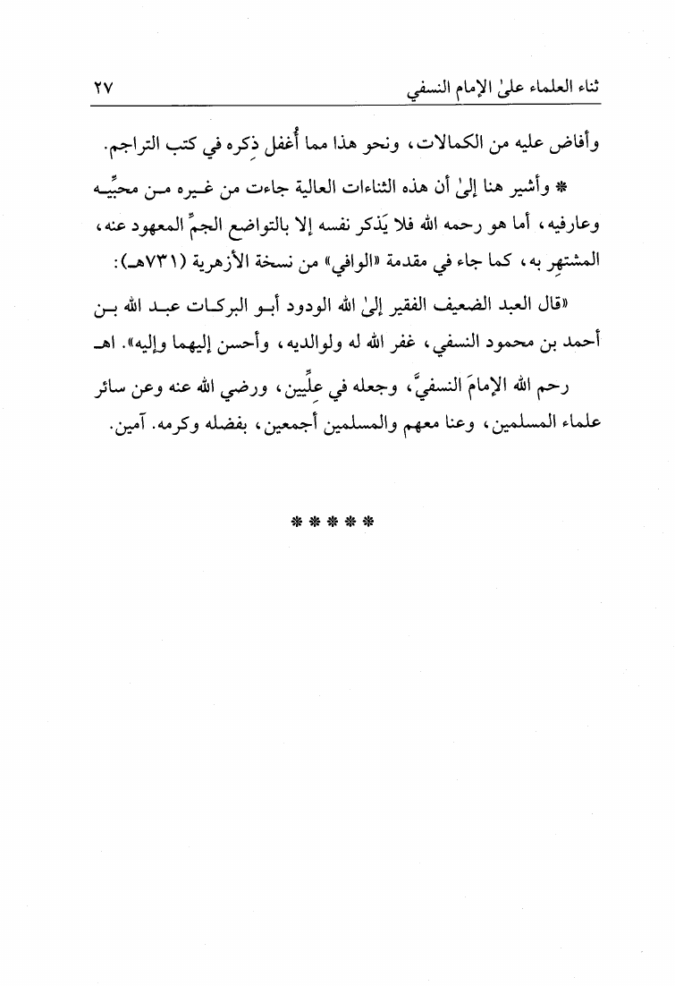 أبو البركات عبد الله بن أحمد بن محمود حافظ الدين النسفي