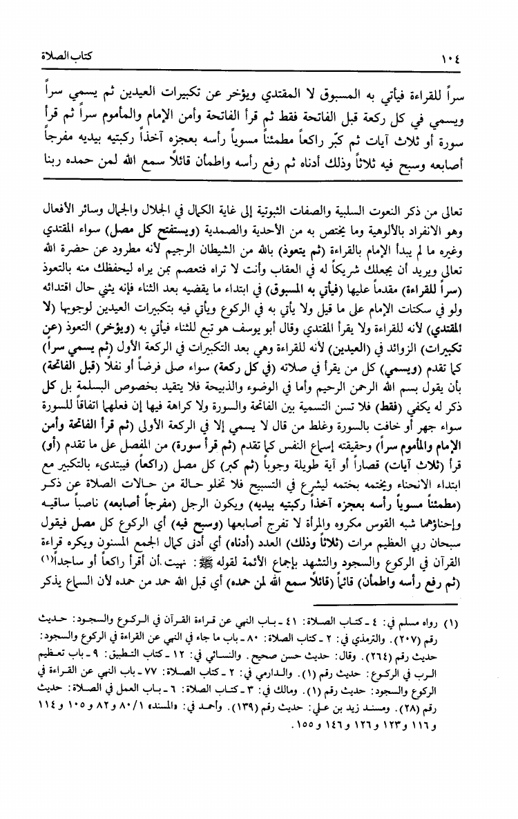 نام کتاب : مراقي الفلاح بإمداد الفتاح شرح نور الإيضاح ونجاة الأرواح وبهامشه متن نور الإيضاح مع تقريرات من حاشية الطحطاوي نویسنده : حسن بن عمار بن علي الشرنبلالي الحنفي جلد : 1 صفحه : 104