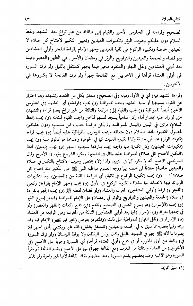 نام کتاب : مراقي الفلاح بإمداد الفتاح شرح نور الإيضاح ونجاة الأرواح وبهامشه متن نور الإيضاح مع تقريرات من حاشية الطحطاوي نویسنده : حسن بن عمار بن علي الشرنبلالي الحنفي جلد : 1 صفحه : 93