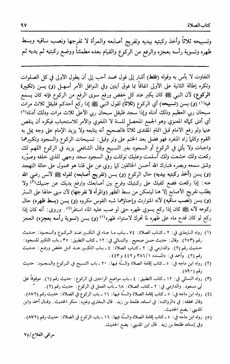 نام کتاب : مراقي الفلاح بإمداد الفتاح شرح نور الإيضاح ونجاة الأرواح وبهامشه متن نور الإيضاح مع تقريرات من حاشية الطحطاوي نویسنده : حسن بن عمار بن علي الشرنبلالي الحنفي جلد : 1 صفحه : 97