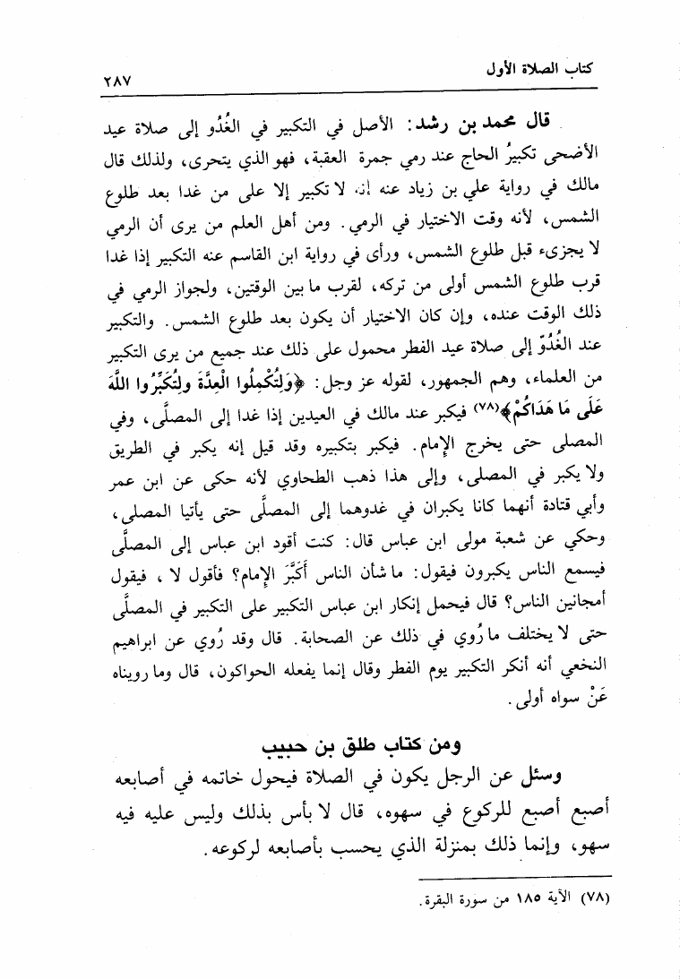 نام کتاب : البيان والتحصيل والشرح والتوجيه والتعليل في المسائل المستخرجة، وضمنه: المستخرجة من الأسمعة المعروفة بالعتبية نویسنده : محمد بن أحمد بن رشد القرطبي أبو الوليد جلد : 1 صفحه : 287
