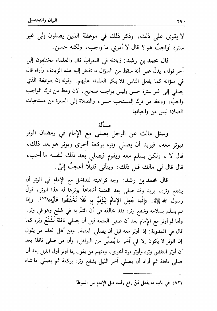 نام کتاب : البيان والتحصيل والشرح والتوجيه والتعليل في المسائل المستخرجة، وضمنه: المستخرجة من الأسمعة المعروفة بالعتبية نویسنده : محمد بن أحمد بن رشد القرطبي أبو الوليد جلد : 1 صفحه : 290