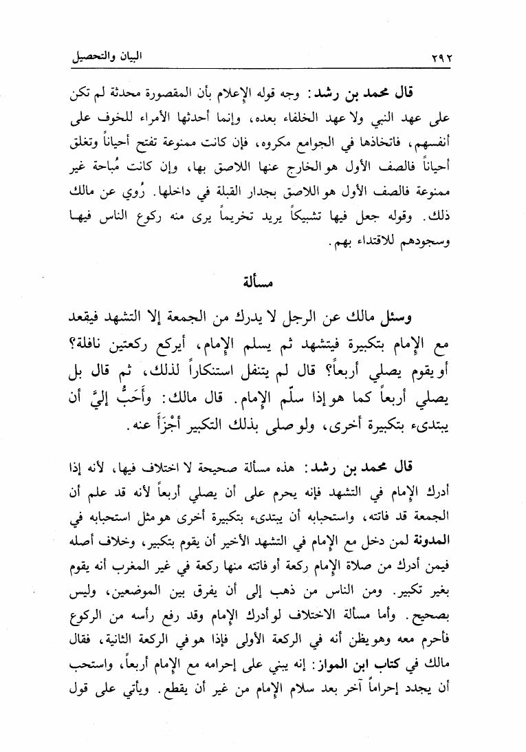 نام کتاب : البيان والتحصيل والشرح والتوجيه والتعليل في المسائل المستخرجة، وضمنه: المستخرجة من الأسمعة المعروفة بالعتبية نویسنده : محمد بن أحمد بن رشد القرطبي أبو الوليد جلد : 1 صفحه : 292