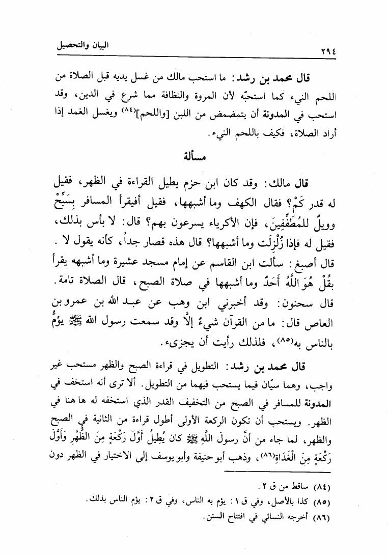 نام کتاب : البيان والتحصيل والشرح والتوجيه والتعليل في المسائل المستخرجة، وضمنه: المستخرجة من الأسمعة المعروفة بالعتبية نویسنده : محمد بن أحمد بن رشد القرطبي أبو الوليد جلد : 1 صفحه : 294