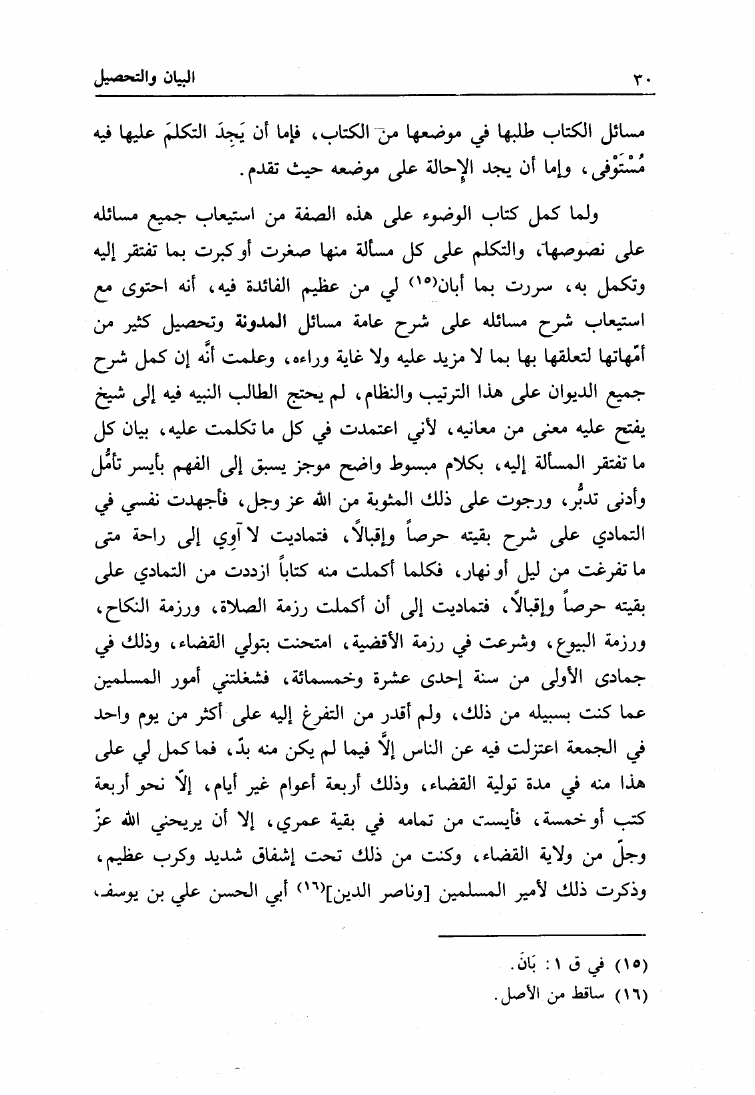نام کتاب : البيان والتحصيل والشرح والتوجيه والتعليل في المسائل المستخرجة، وضمنه: المستخرجة من الأسمعة المعروفة بالعتبية نویسنده : محمد بن أحمد بن رشد القرطبي أبو الوليد جلد : 1 صفحه : 30
