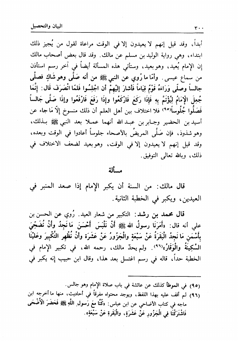 نام کتاب : البيان والتحصيل والشرح والتوجيه والتعليل في المسائل المستخرجة، وضمنه: المستخرجة من الأسمعة المعروفة بالعتبية نویسنده : محمد بن أحمد بن رشد القرطبي أبو الوليد جلد : 1 صفحه : 300