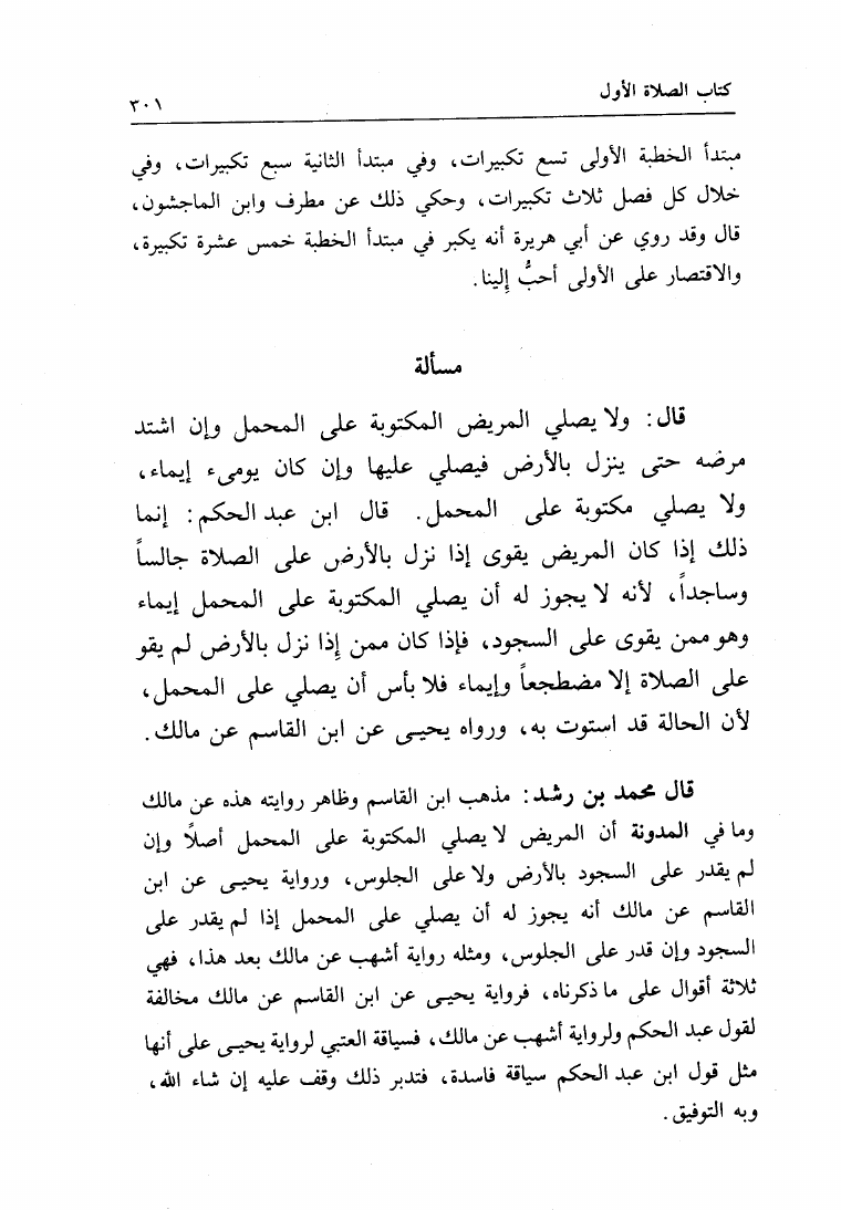 نام کتاب : البيان والتحصيل والشرح والتوجيه والتعليل في المسائل المستخرجة، وضمنه: المستخرجة من الأسمعة المعروفة بالعتبية نویسنده : محمد بن أحمد بن رشد القرطبي أبو الوليد جلد : 1 صفحه : 301