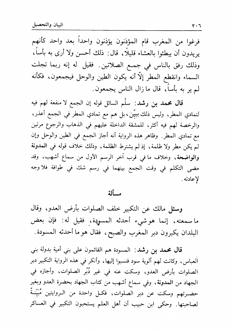 نام کتاب : البيان والتحصيل والشرح والتوجيه والتعليل في المسائل المستخرجة، وضمنه: المستخرجة من الأسمعة المعروفة بالعتبية نویسنده : محمد بن أحمد بن رشد القرطبي أبو الوليد جلد : 1 صفحه : 306