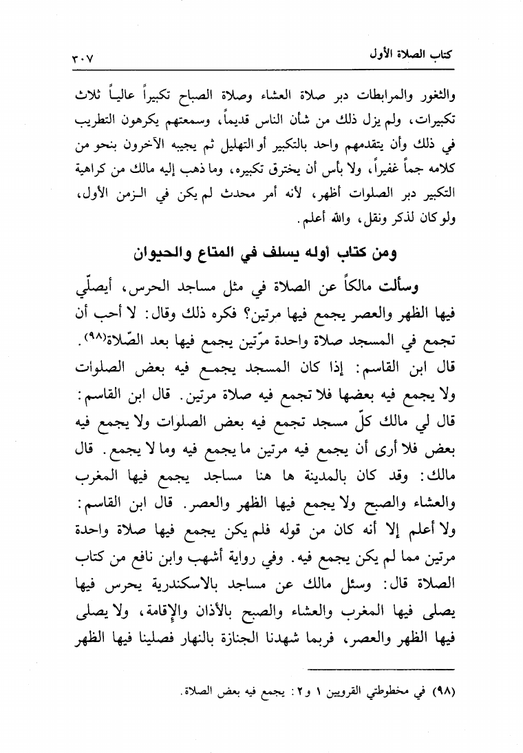 نام کتاب : البيان والتحصيل والشرح والتوجيه والتعليل في المسائل المستخرجة، وضمنه: المستخرجة من الأسمعة المعروفة بالعتبية نویسنده : محمد بن أحمد بن رشد القرطبي أبو الوليد جلد : 1 صفحه : 307