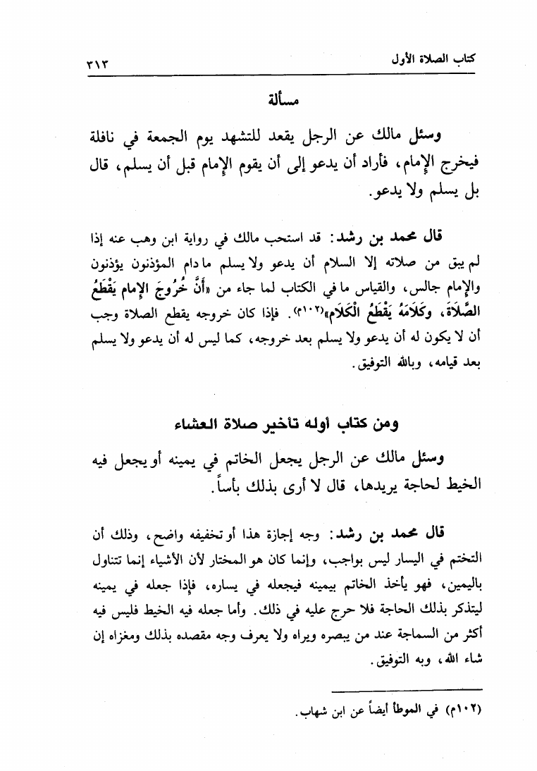 نام کتاب : البيان والتحصيل والشرح والتوجيه والتعليل في المسائل المستخرجة، وضمنه: المستخرجة من الأسمعة المعروفة بالعتبية نویسنده : محمد بن أحمد بن رشد القرطبي أبو الوليد جلد : 1 صفحه : 313