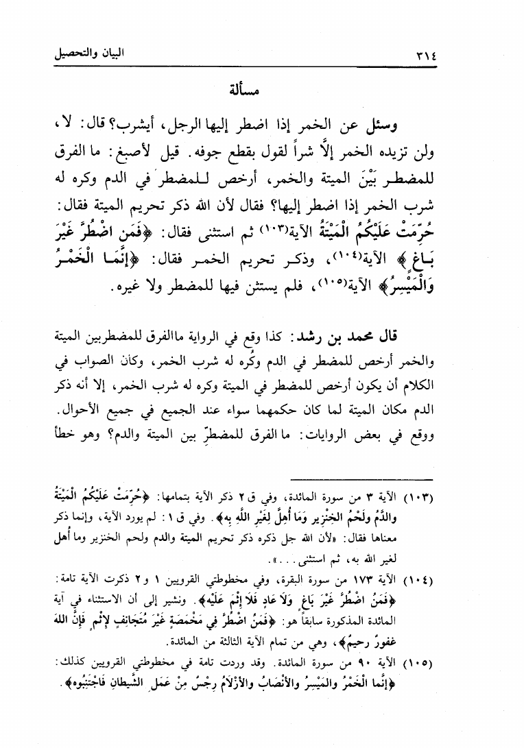 نام کتاب : البيان والتحصيل والشرح والتوجيه والتعليل في المسائل المستخرجة، وضمنه: المستخرجة من الأسمعة المعروفة بالعتبية نویسنده : محمد بن أحمد بن رشد القرطبي أبو الوليد جلد : 1 صفحه : 314