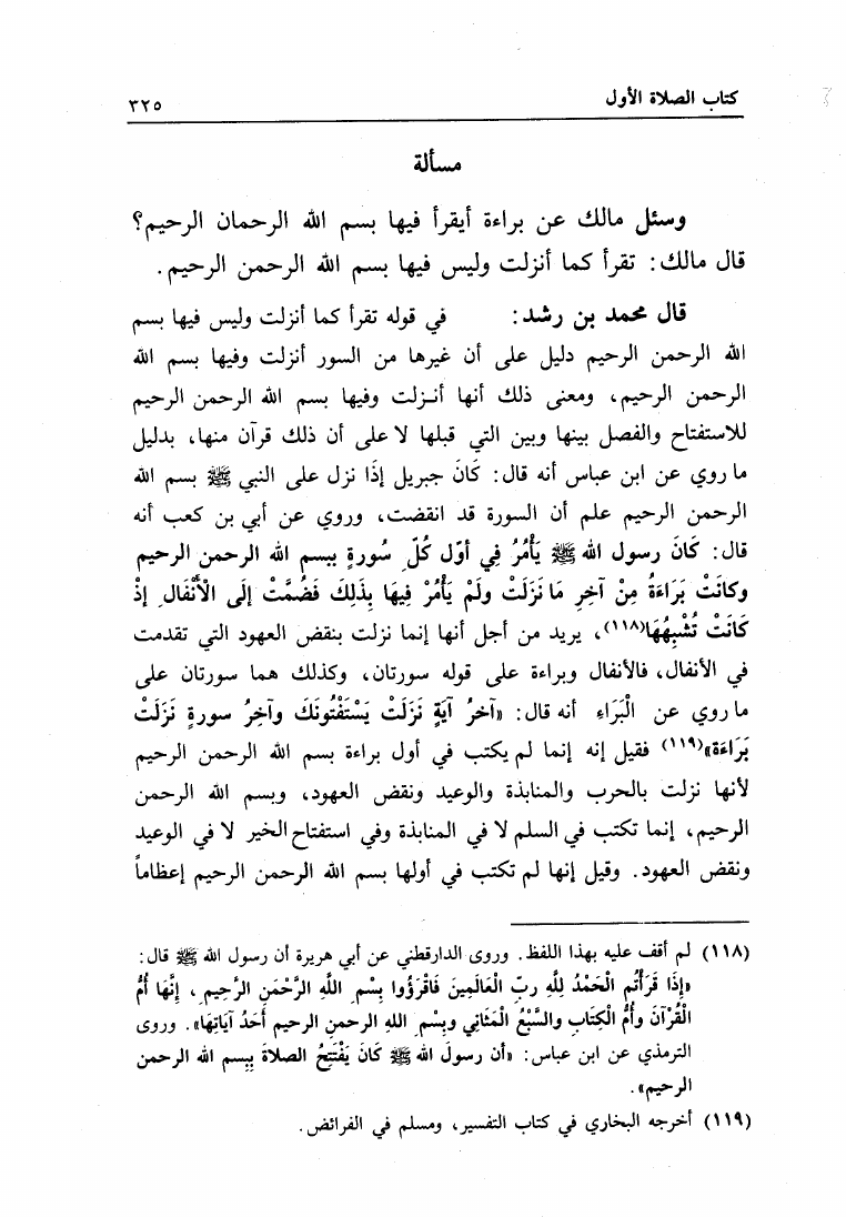 نام کتاب : البيان والتحصيل والشرح والتوجيه والتعليل في المسائل المستخرجة، وضمنه: المستخرجة من الأسمعة المعروفة بالعتبية نویسنده : محمد بن أحمد بن رشد القرطبي أبو الوليد جلد : 1 صفحه : 325
