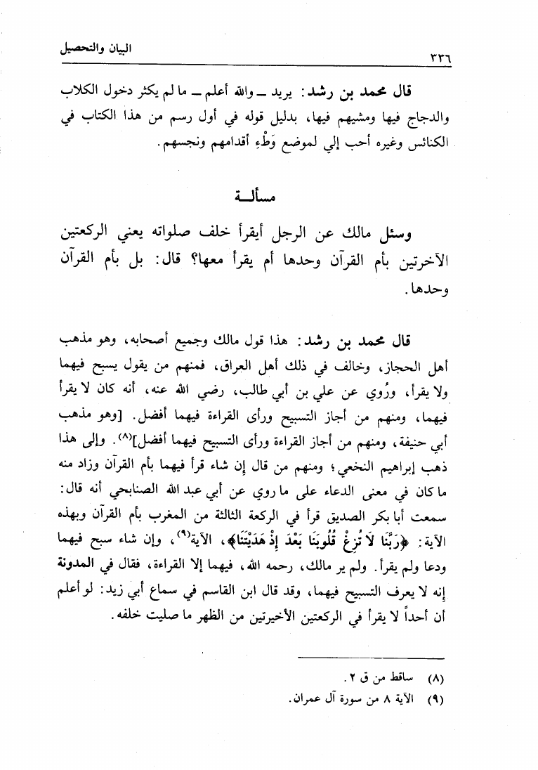 نام کتاب : البيان والتحصيل والشرح والتوجيه والتعليل في المسائل المستخرجة، وضمنه: المستخرجة من الأسمعة المعروفة بالعتبية نویسنده : محمد بن أحمد بن رشد القرطبي أبو الوليد جلد : 1 صفحه : 336