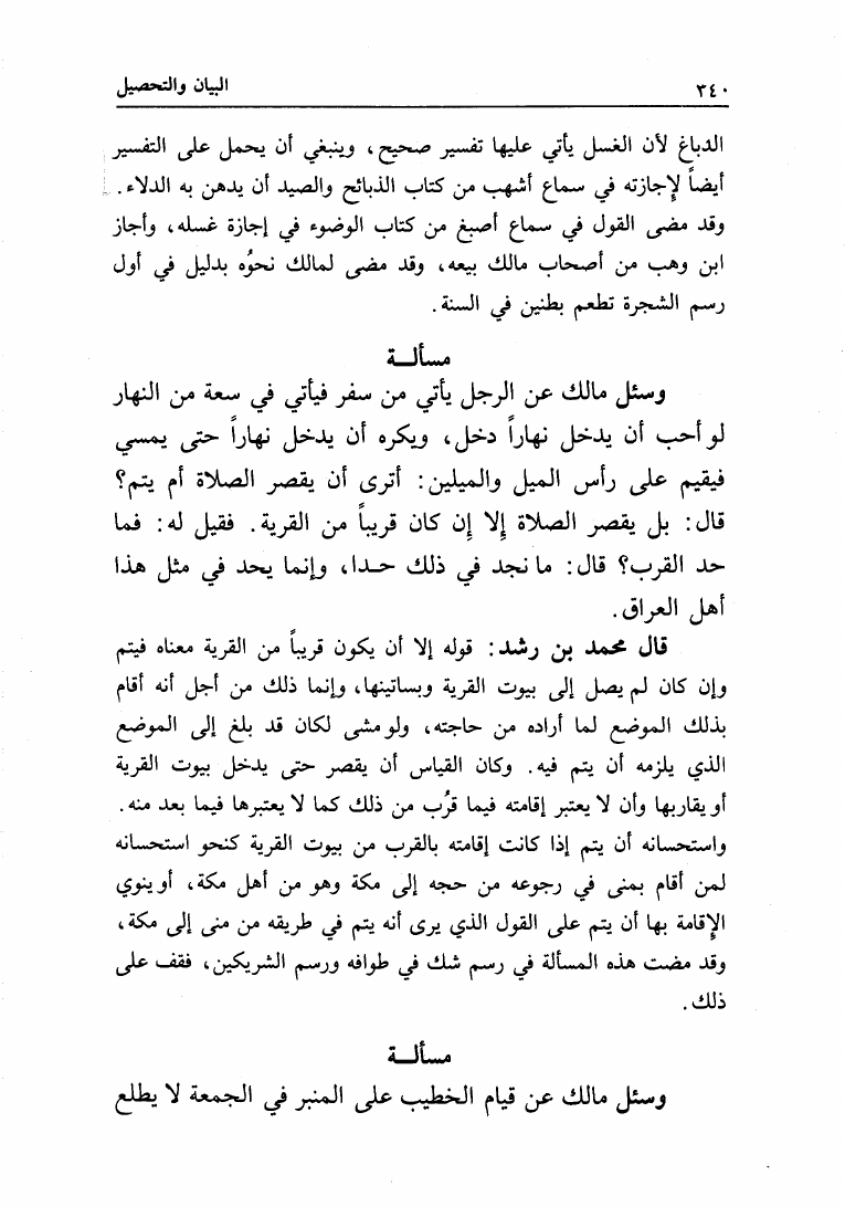 نام کتاب : البيان والتحصيل والشرح والتوجيه والتعليل في المسائل المستخرجة، وضمنه: المستخرجة من الأسمعة المعروفة بالعتبية نویسنده : محمد بن أحمد بن رشد القرطبي أبو الوليد جلد : 1 صفحه : 340