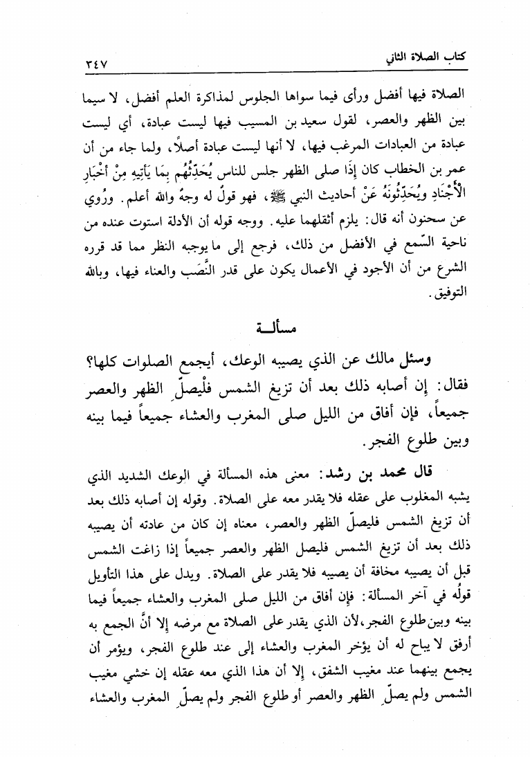 نام کتاب : البيان والتحصيل والشرح والتوجيه والتعليل في المسائل المستخرجة، وضمنه: المستخرجة من الأسمعة المعروفة بالعتبية نویسنده : محمد بن أحمد بن رشد القرطبي أبو الوليد جلد : 1 صفحه : 347