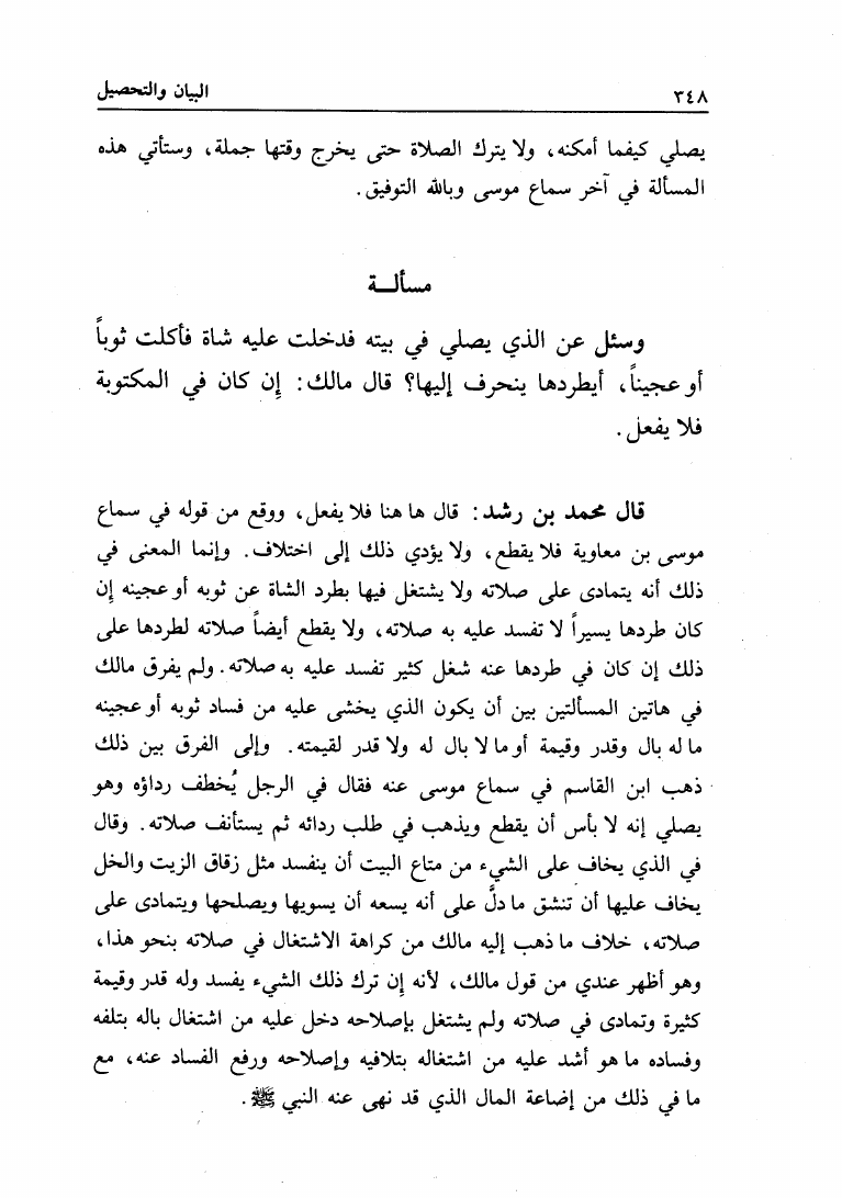 نام کتاب : البيان والتحصيل والشرح والتوجيه والتعليل في المسائل المستخرجة، وضمنه: المستخرجة من الأسمعة المعروفة بالعتبية نویسنده : محمد بن أحمد بن رشد القرطبي أبو الوليد جلد : 1 صفحه : 348