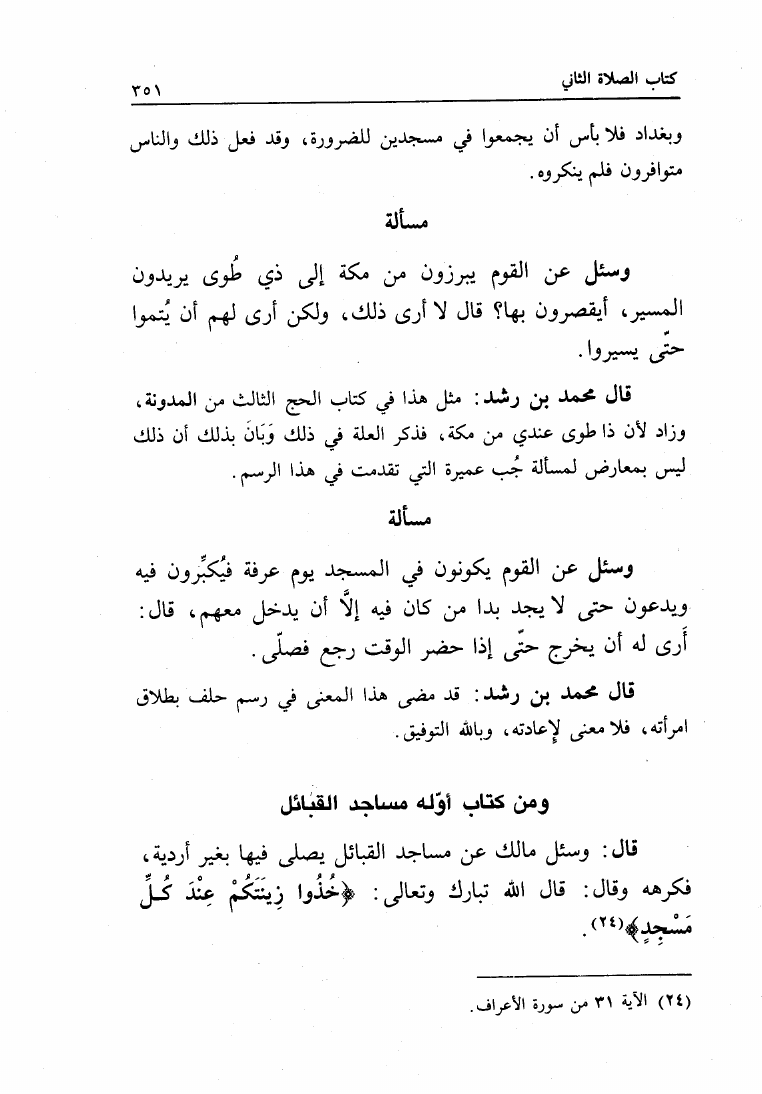 نام کتاب : البيان والتحصيل والشرح والتوجيه والتعليل في المسائل المستخرجة، وضمنه: المستخرجة من الأسمعة المعروفة بالعتبية نویسنده : محمد بن أحمد بن رشد القرطبي أبو الوليد جلد : 1 صفحه : 351