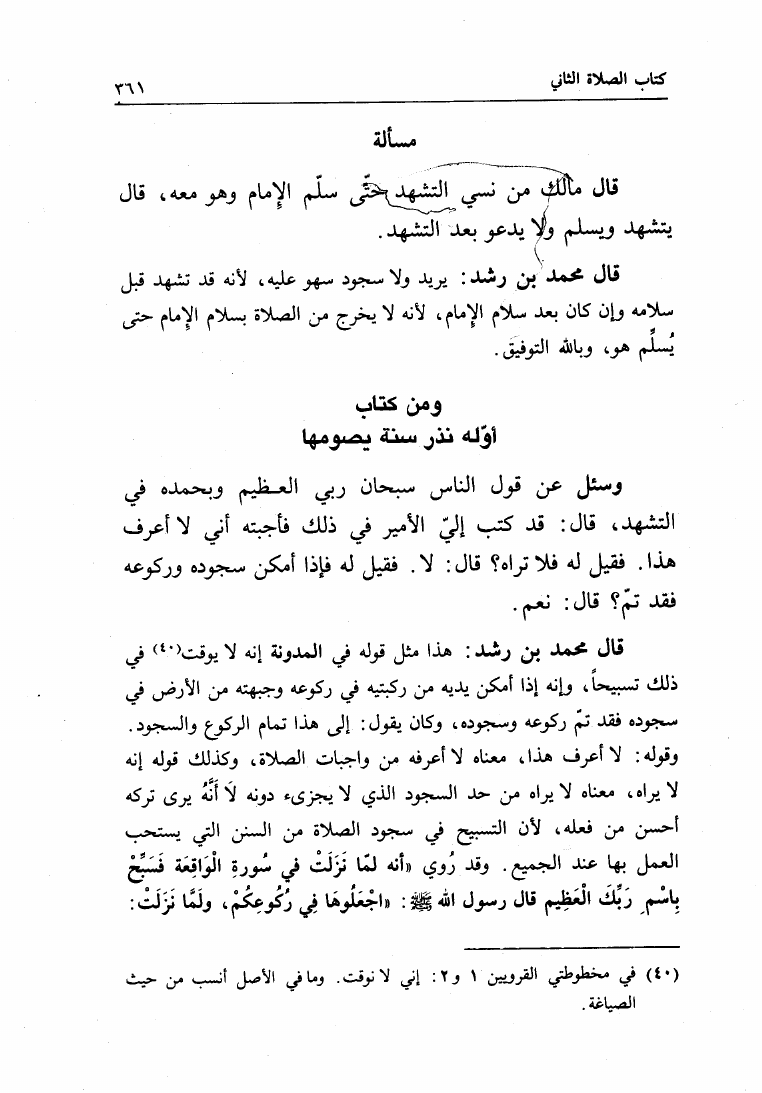 نام کتاب : البيان والتحصيل والشرح والتوجيه والتعليل في المسائل المستخرجة، وضمنه: المستخرجة من الأسمعة المعروفة بالعتبية نویسنده : محمد بن أحمد بن رشد القرطبي أبو الوليد جلد : 1 صفحه : 361