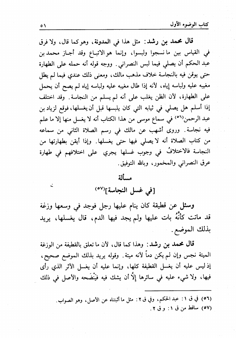 نام کتاب : البيان والتحصيل والشرح والتوجيه والتعليل في المسائل المستخرجة، وضمنه: المستخرجة من الأسمعة المعروفة بالعتبية نویسنده : محمد بن أحمد بن رشد القرطبي أبو الوليد جلد : 1 صفحه : 51