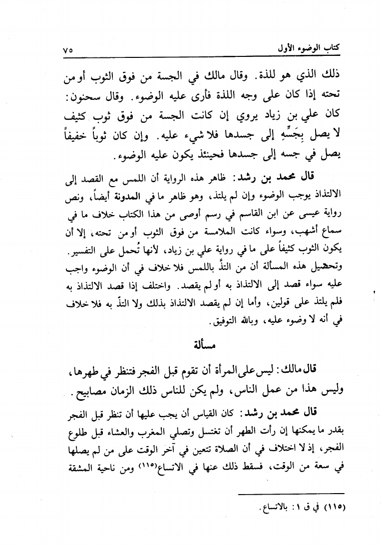 نام کتاب : البيان والتحصيل والشرح والتوجيه والتعليل في المسائل المستخرجة، وضمنه: المستخرجة من الأسمعة المعروفة بالعتبية نویسنده : محمد بن أحمد بن رشد القرطبي أبو الوليد جلد : 1 صفحه : 75