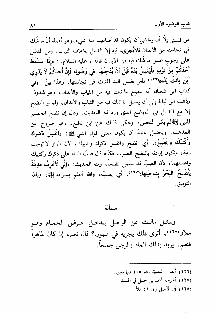 نام کتاب : البيان والتحصيل والشرح والتوجيه والتعليل في المسائل المستخرجة، وضمنه: المستخرجة من الأسمعة المعروفة بالعتبية نویسنده : محمد بن أحمد بن رشد القرطبي أبو الوليد جلد : 1 صفحه : 81