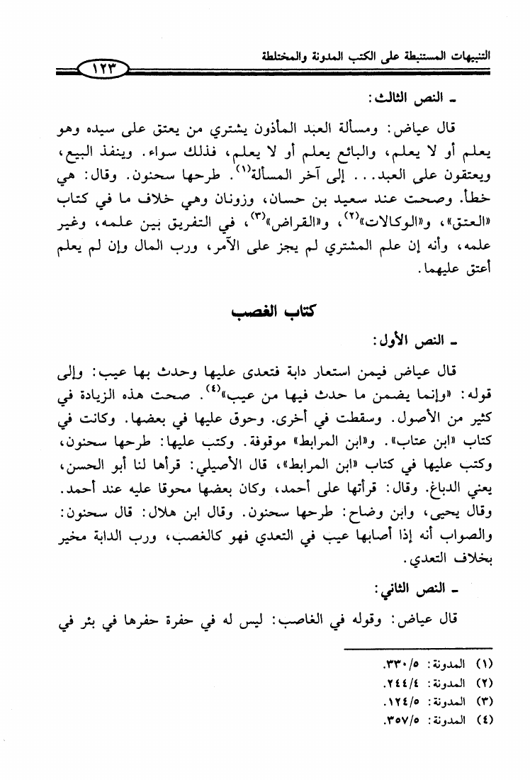 التنبيهات المستنبطة على الكتب المدونة والمختلطة